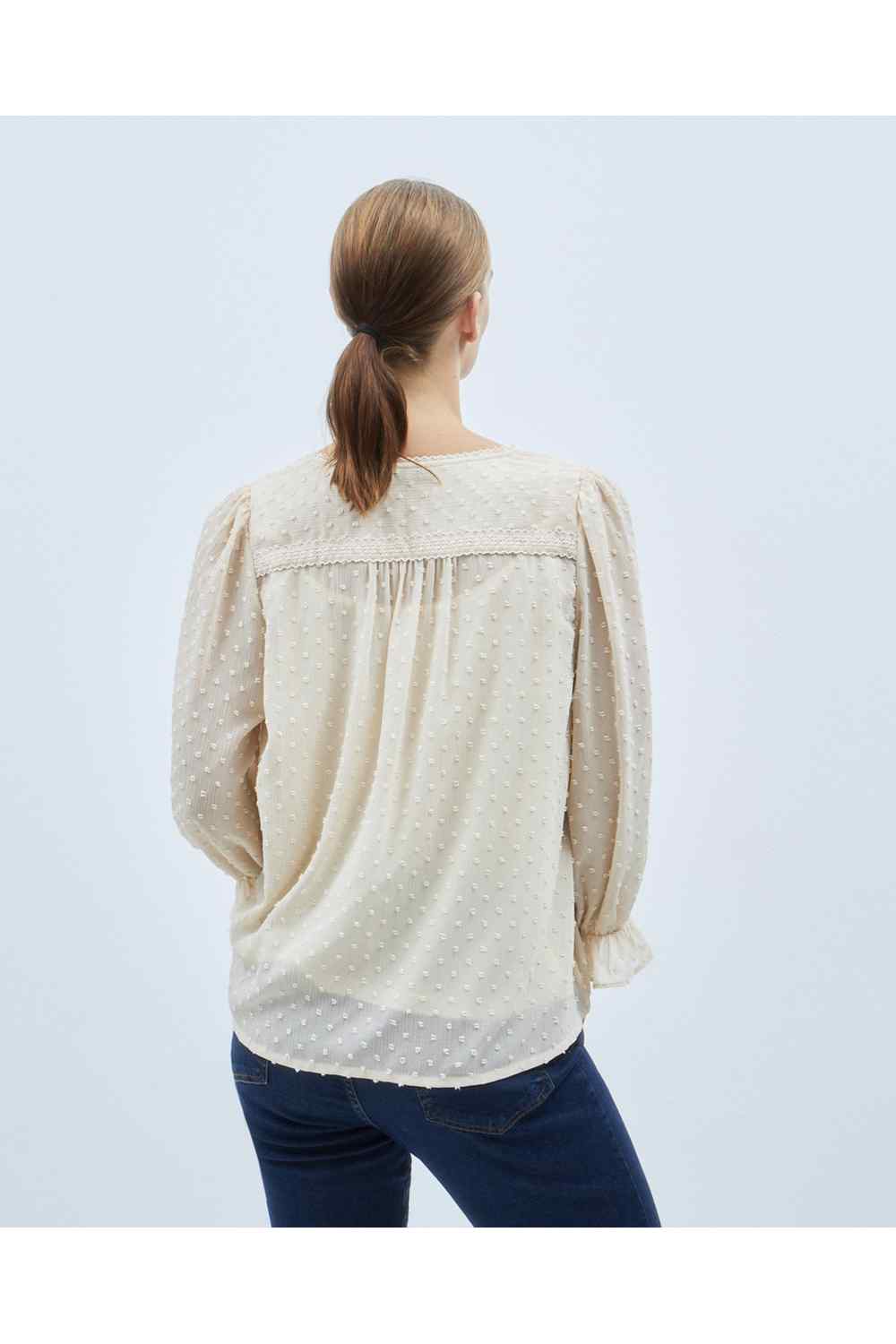 Long-sleeve Swiss dot blouse