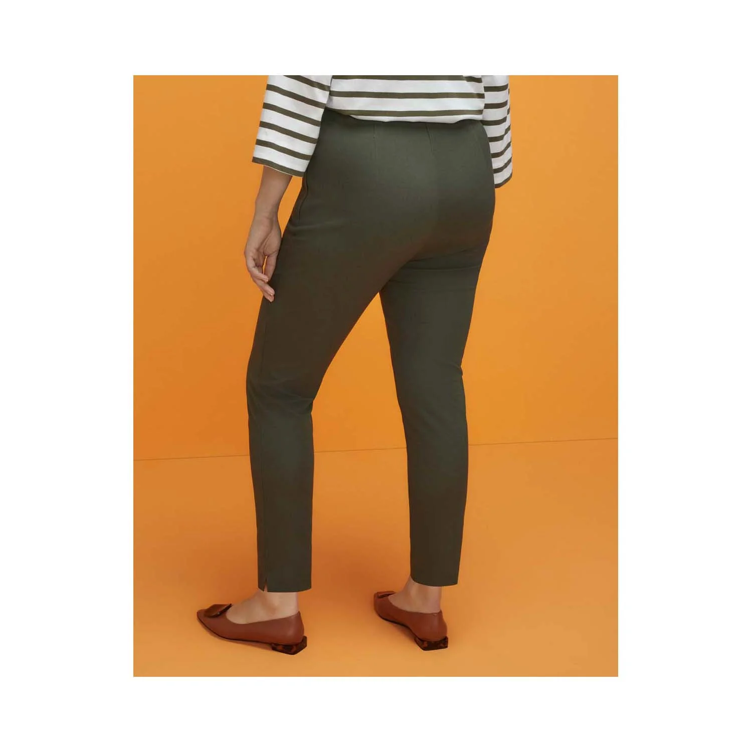Women's slim fit plain-coloured trousers with elastic waistband