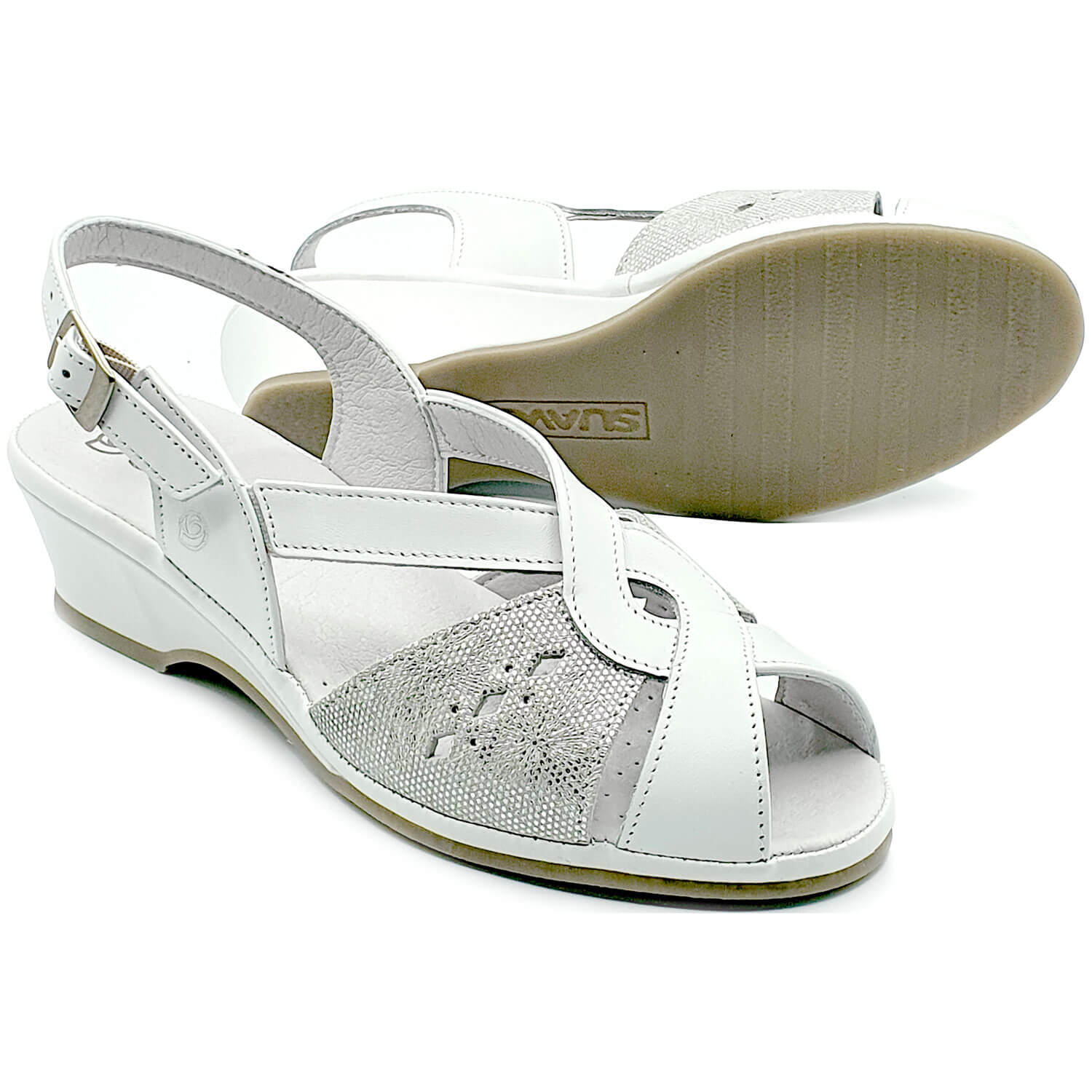 Sauve covered wedge leather insoles buckle closure constrast materials