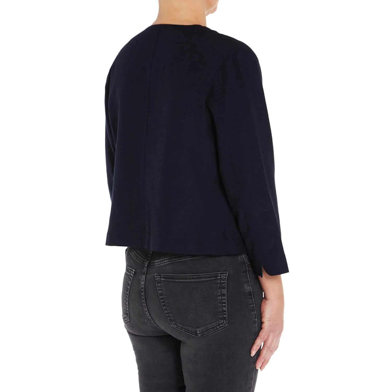 This stylish navy cropped jacket is the perfect addition to complete any outfit in style. Featuring 2 pockets and a buttoned front, this jacket is easy-to-wear.